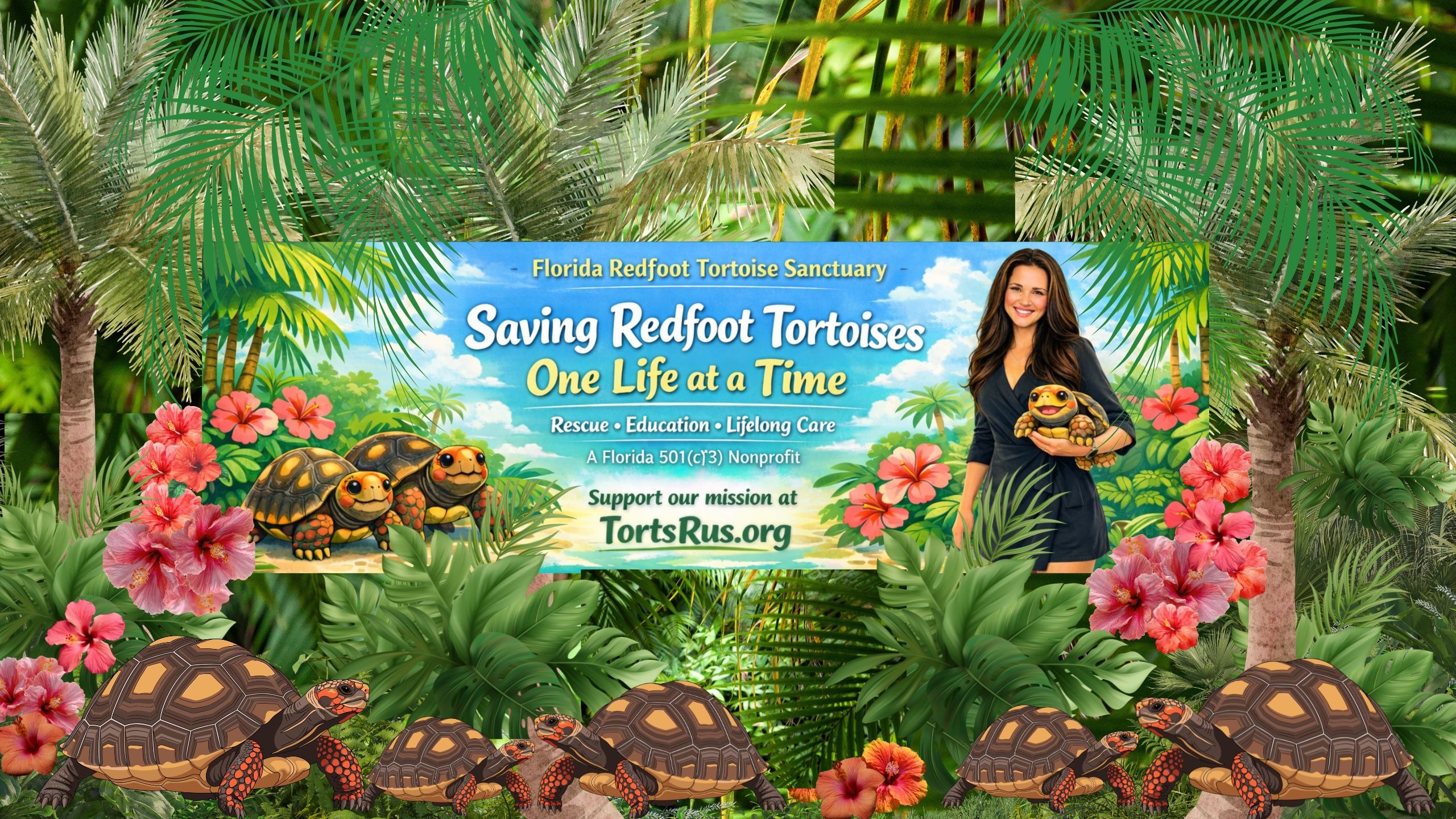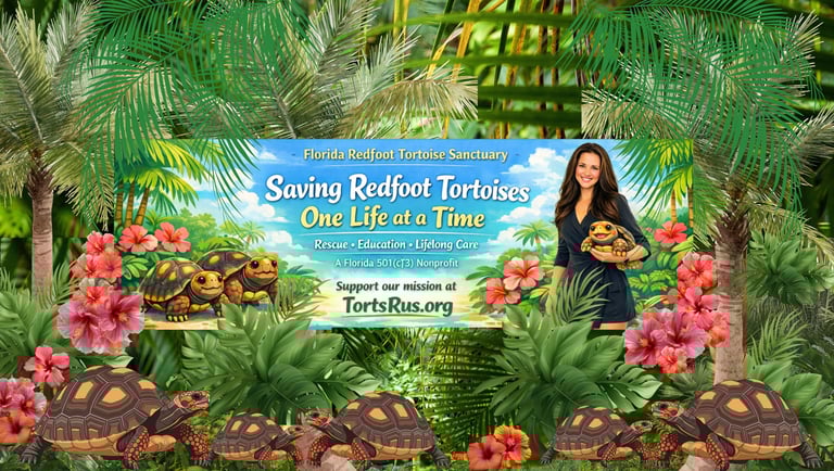 Every visit supports our 501(c)(3) nonprofit mission to rescue, care for, and educate others about Redfoot tortoises.