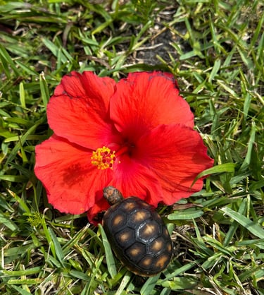 Here, you’ll see the true heart of our sanctuary: tender moments of connection, curious looks, and the silly, lovable personalities of our Redfoot tortoises. They each have their own quirks — some love neck rubs, some pose for the camera, and others just want to follow us around.