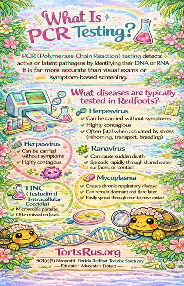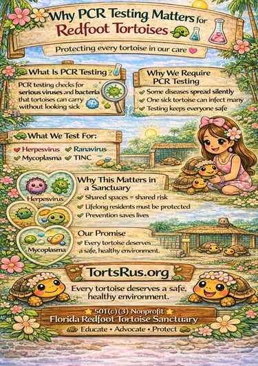At Torts R Us, every tortoise is fully tested and evaluated before joining our sanctuary.