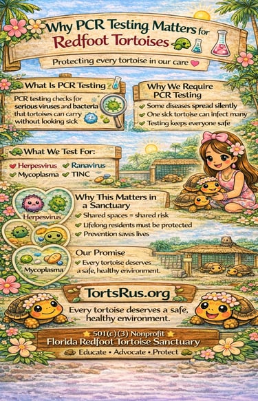 Your donation helps provide rescue, PCR testing, veterinary care, food, and safe housing for Redfoot tortoises in need.